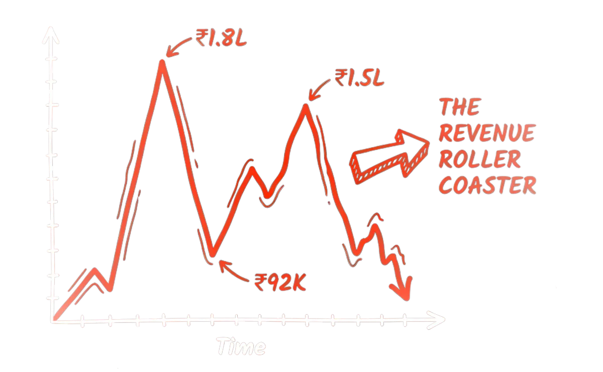 Some months you hit ₹1.8L and feel like you're finally breaking through. Then next month crashes to ₹92K.
